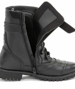 The Combat Women’s Boots are a full featured riding boot that blends classic styling with details like a full length side zip, reinforced impact areas and reflective panels at the rear. The toe box and heel are styled further with overlaid layers of leather to make this boot truly stand out.