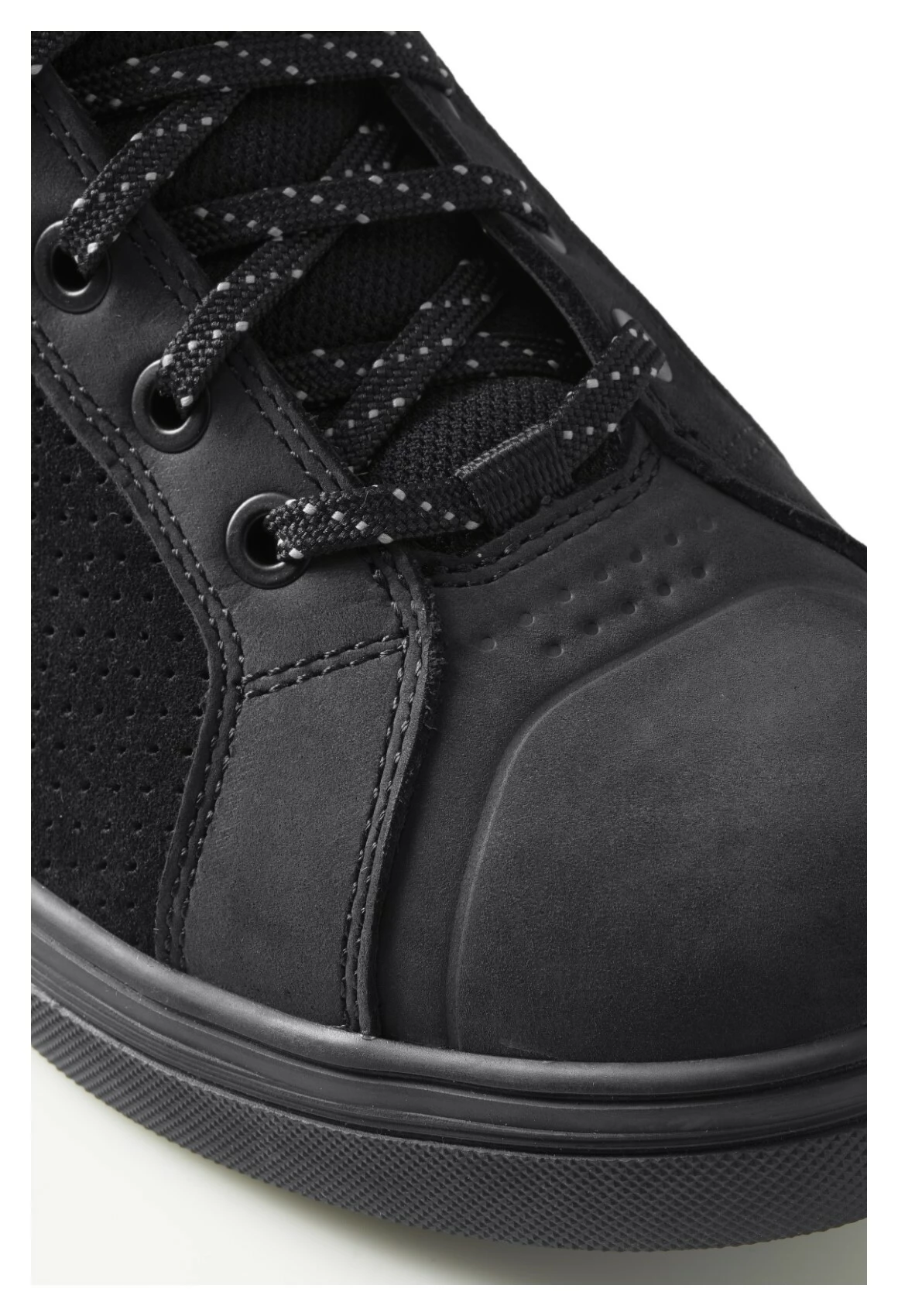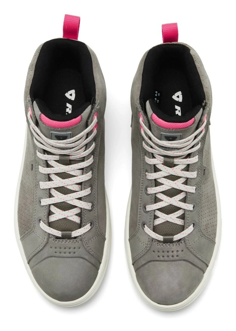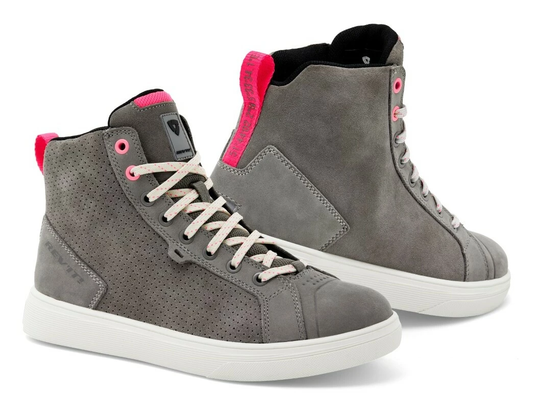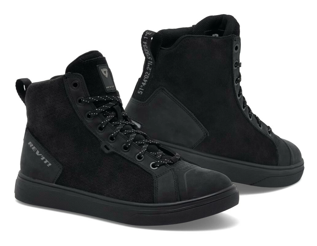 The Arrow Riding Shoes from REV’IT! blend CE rated rider protection into a casual “dunk” style riding shoe. A highlight of the Arrow Shoes is the three uniquely finished types of cowhide that help animate the Arrows’ simplified design. Starting with the outer side panels, REV’IT! applies perforated, oiled suede. The inner panel of the upper is again oiled suede but without perforation for increased durability against control snags and hot engine parts. Leather at the tongue, eyelets, heel and toe cap are all soft nubuck.ย