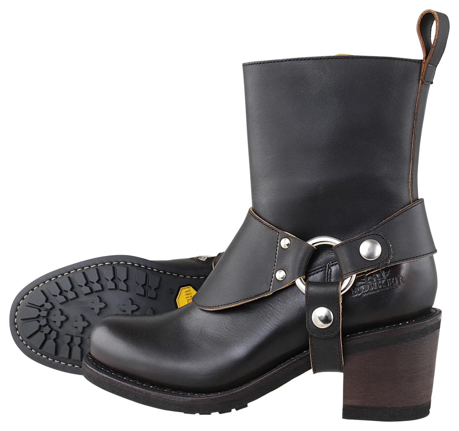 The Freeway Women’s Boots from Rokker perfectly intertwine the looks of a fashion statement and the heavy-duty requirements of a riding garment. Constructed of enduring cowhide leather with a vintage finish, the Highway Boots are as substantial as they are seductive.