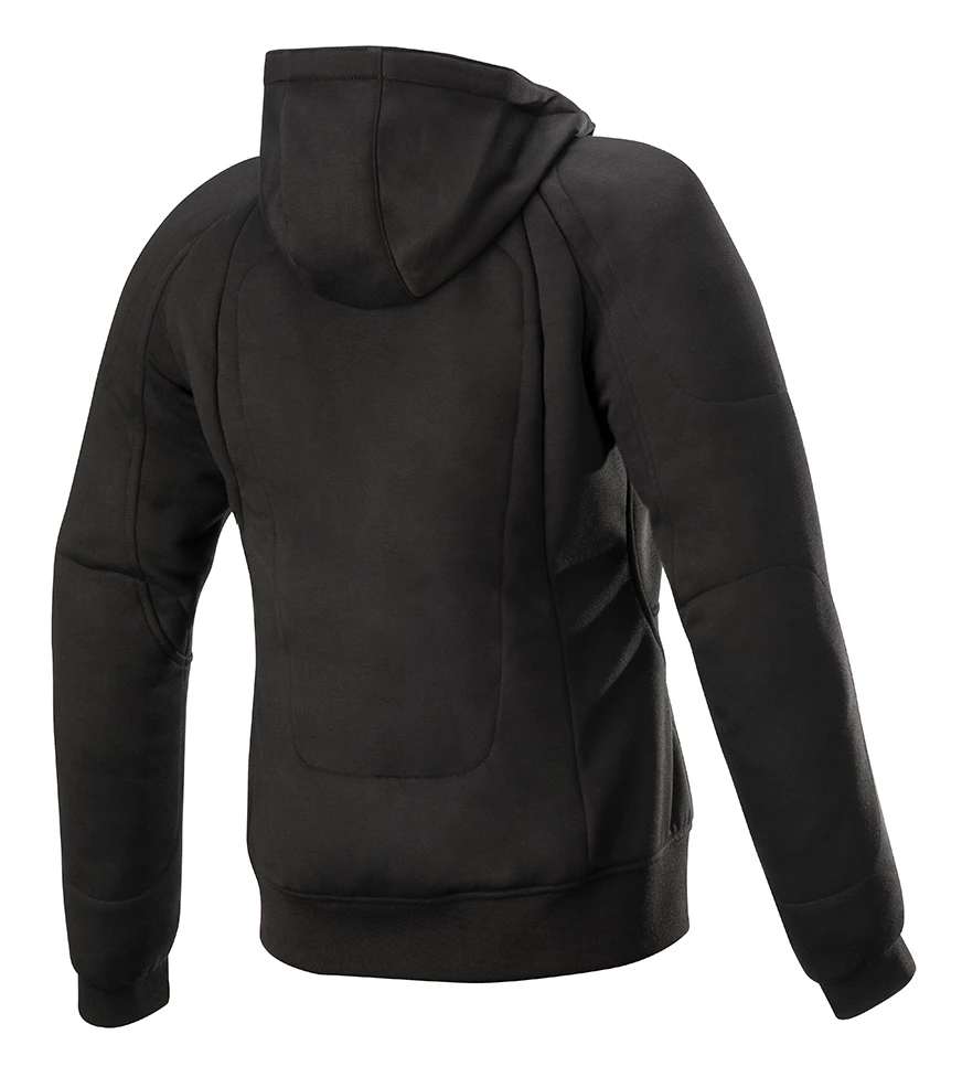The Alpinestars Stella Chrome Sport Hoody takes the casual look of a hoodie and infuses aramid reinforcement at the elbows, shoulders and back. CE rated elbow and shoulder armor come standard, but the back armor insert is sold separately. A waterproof inner pocket is ready to house your cell phone should you forget to check the forecast and ride into rain.