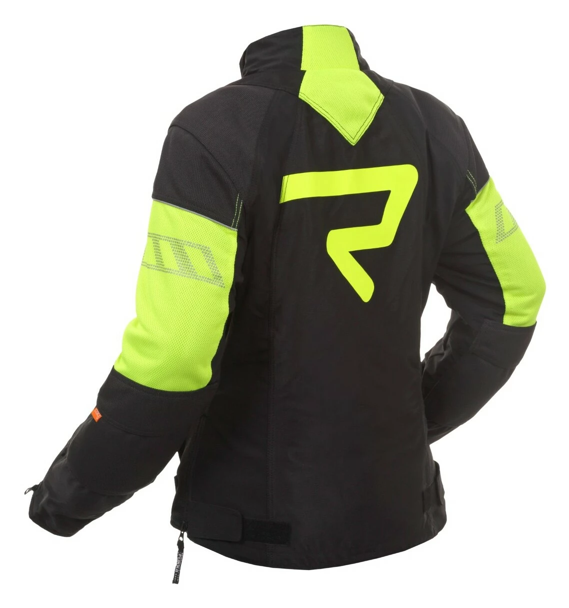 The Rukka Stretchair Women’s Jacket is purpose built for hot weather riding thanks to Cordura AFT mesh that vents freely, but still protects against abrasion. Strategically placed stretch Cordura panels help with fit and freedom of movement. CE rated armor cover the shoulder and elbows with the option of adding a back protector insert (sold separately). A single internal waterproof pocket keeps your cell phone and documents dry in the event of an unforeseen sun shower. Hot weather riding is a literal breeze.