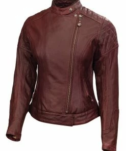 The Riot is for the ladies who are ready to cause a disturbance. A rocker jacket built for her that looks just as good on the bike as it does off the bike. Made of premium Blackstone top grain cowhide that is soft and supple the Riot is durable and abrasion resistant. The asymmetrical front zipper screams style and the quilted stitch accents bring just the right amount of femininity to this vintage styled cafΓ© jacket.