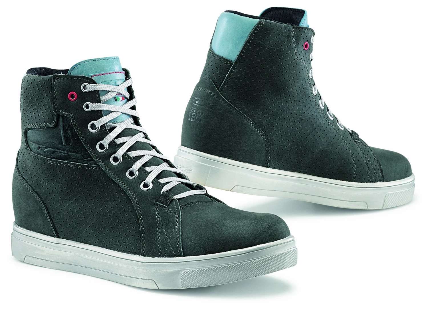 Chic yet pragmatic, the TCX Street Ace Air Women’s Shoes are your warm weather riding ace in the hole. The Ace Air Women’s Riding Shoes feature a two-tone leather upper with fully perforated panels down each side to promote excellent air flow across the foot. The sole has an integrated one inch heel lift to provide firmer footing straddling the bike. Subtle ankle reinforcement discs and toe and heel counters give you moto protection without advertising the fact. TCX has blended fashion and functionality with ease, resulting in the ultimate everyday riding footwear – the TCX Street Ace Air Women’s Shoes.