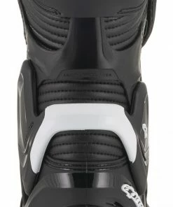 The Alpinestars Stella SMX Plus V2 Boots are the next generation of the popular SMX Plus line, known for track day performance and protection. A high shin plate helps guard against impacts from your foot pegs. Ankle protection comes in the form of Alpinestars’ signature Multi-Link Control system that helps keep your ankle from moving in ways it is not supposed to while still giving you enough range of motion to operate foot controls. A wide heel counter wraps around the back of your foot with shock absorbing padding. A replaceable heel slider keeps you moving in the event of a crash. Accordion stretch zones at key areas provide flexibility and improved fit. With replaceable parts and protective design, the Alpinestars Stella SMX Plus V2 Boots will be a reliable track boot for many seasons.