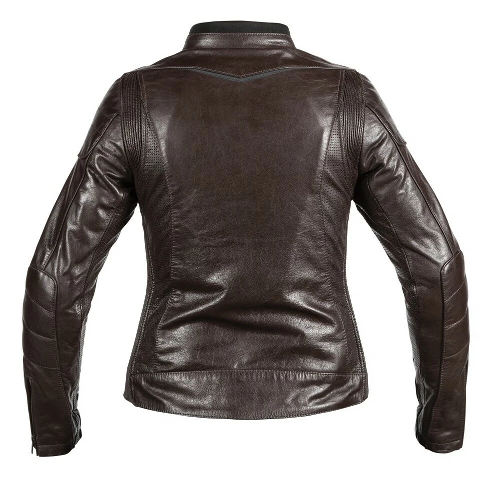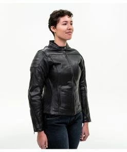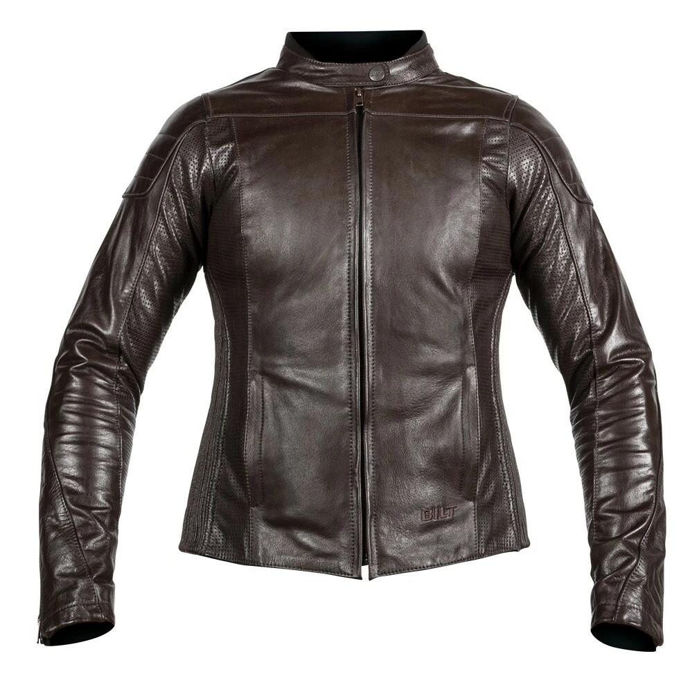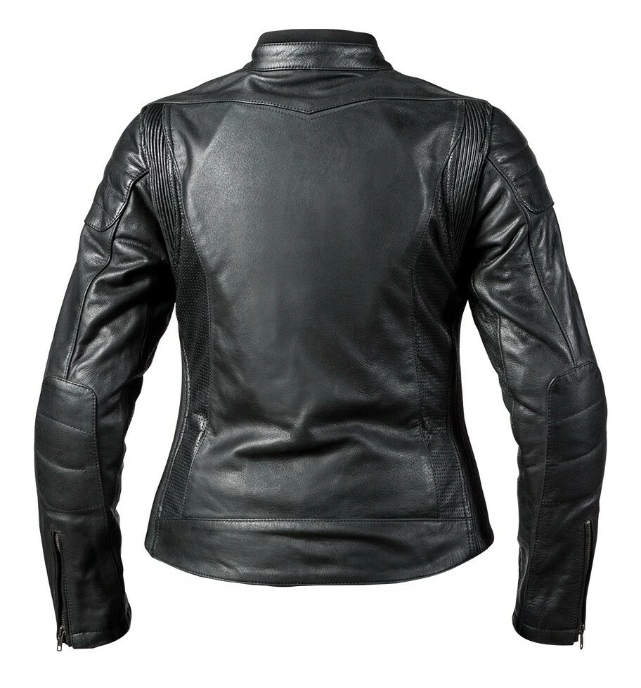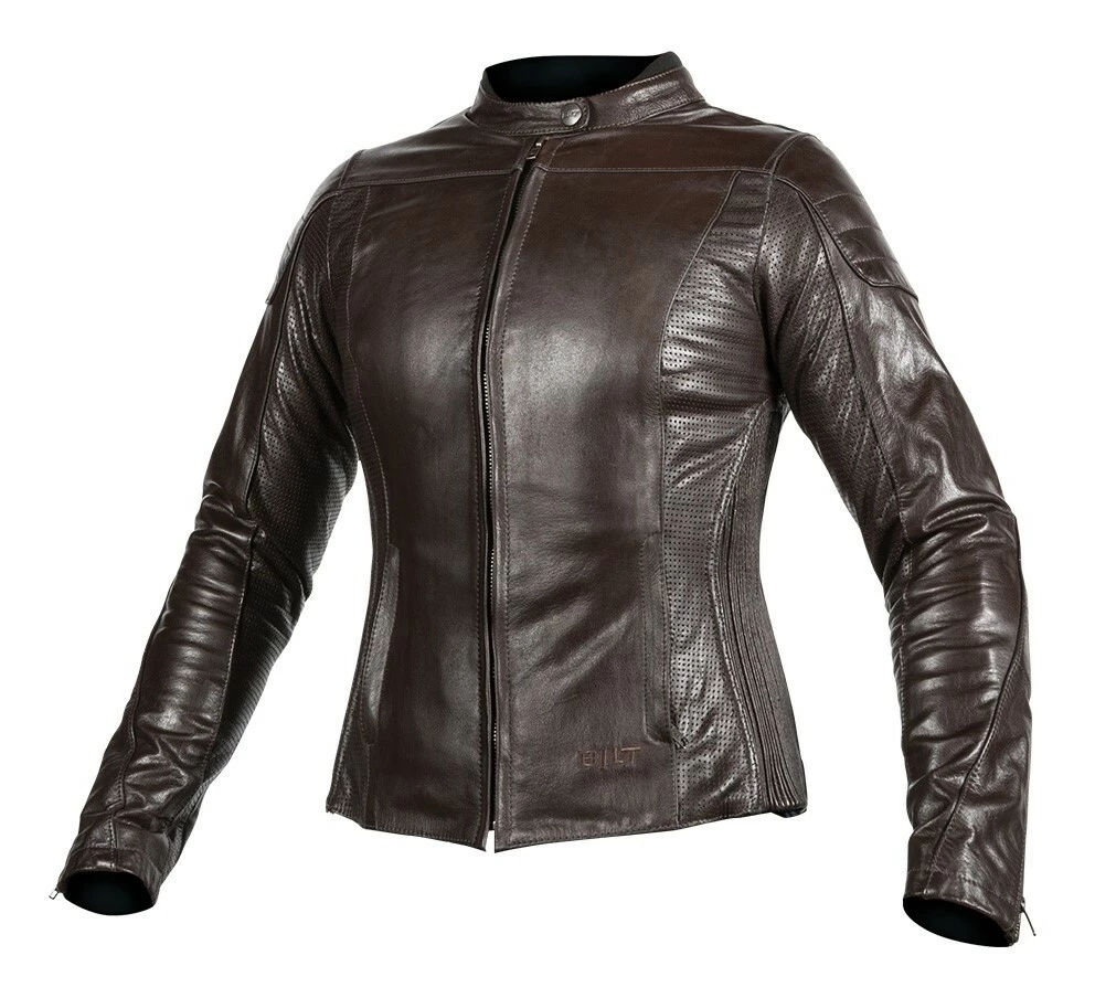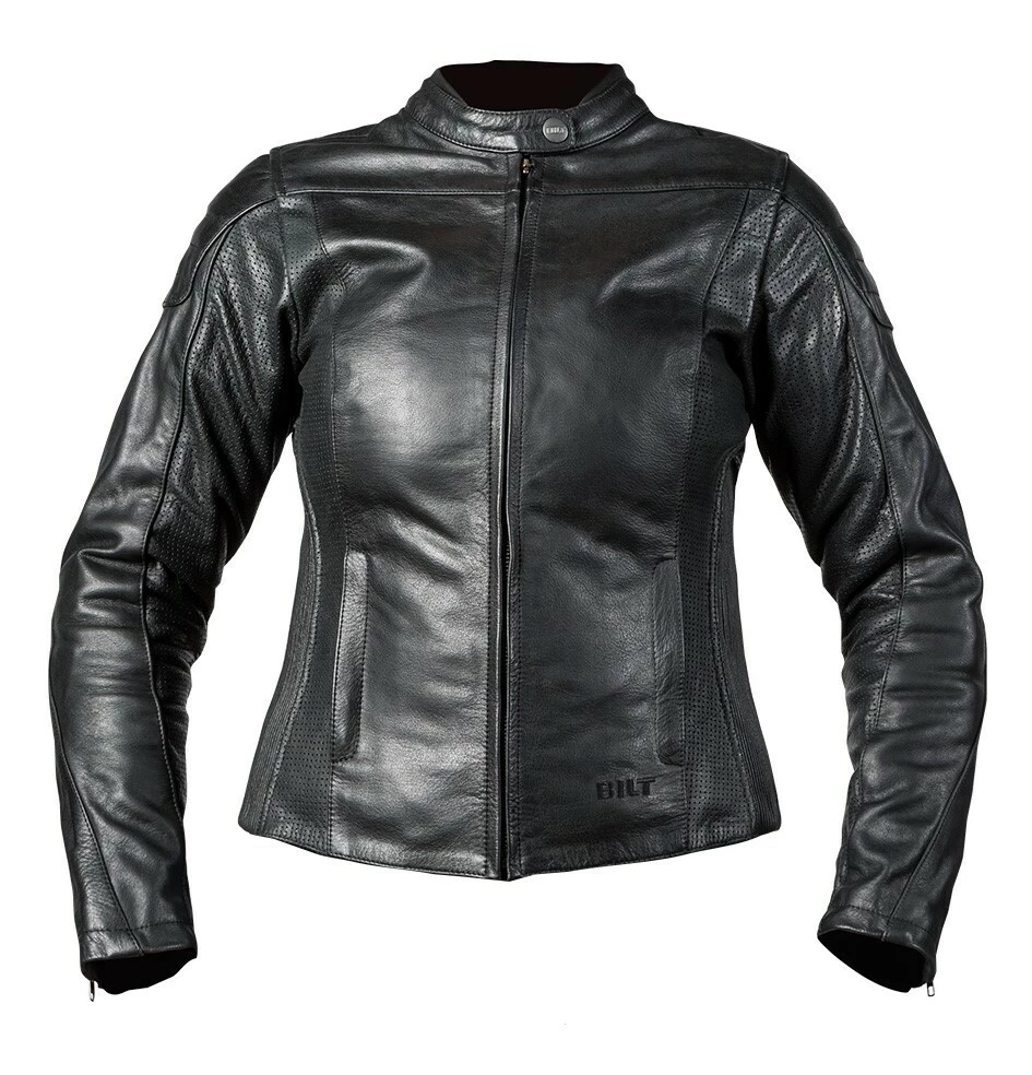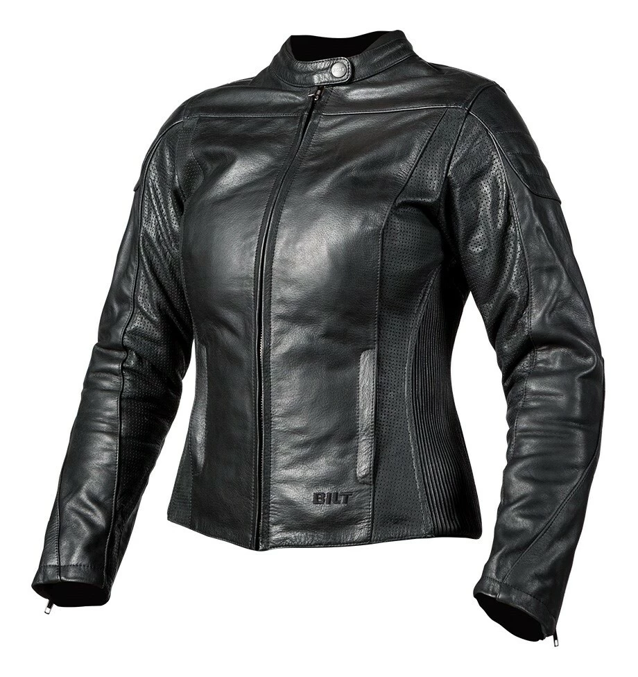 The Arcadia Leather Jacket from BILTย wraps the rider in supple buffalo leather. Shoulders and elbows are capped with a second layer of leather for improved abrasion resistance and then cross-stitched for style. At the under arms and inner sleeves, the buffalo hide is perforated to help regulate temperatures on hotter days. Gusseted shoulders and the contoured women’s fit is achieved via stretch panels of accordion leather – making the Arcadia a comfortable match to cruisers, cafe bikesย and everything in between. Reflective inserts found across the jacket’s shoulders are stealthily done in black. The jacket includes shoulder and elbow impact armor.ย