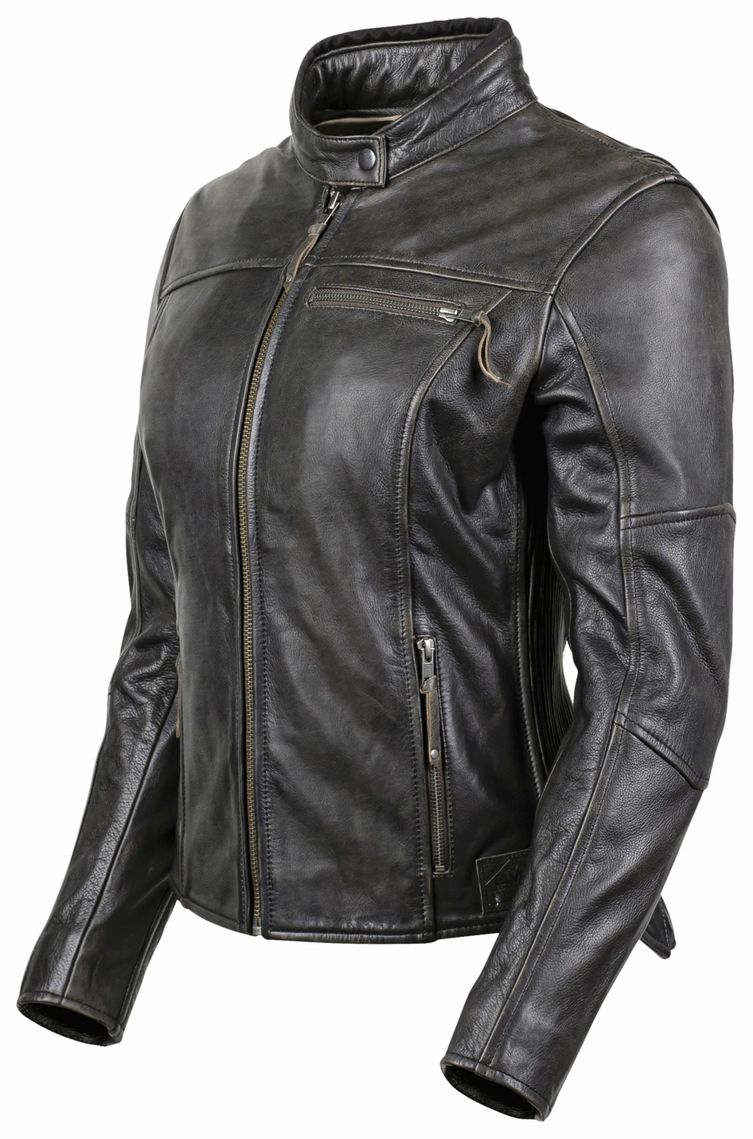 The Cortech Lolo Jacket is ready to take you to new speeds. Pull-up leather is drum-dyed and oiled for a vintage look and feel right out of the box. A large panel of accordion stretch runs the length of the underarms for style and improved fit. Two zippered expansion gussets stylishly flank the extended drop tail. Theย Lolo boasts other high-end features like included SAS-TECยฎ CE Level 2 shoulder and elbow armor and an ultra-comfortable satin liner.ย