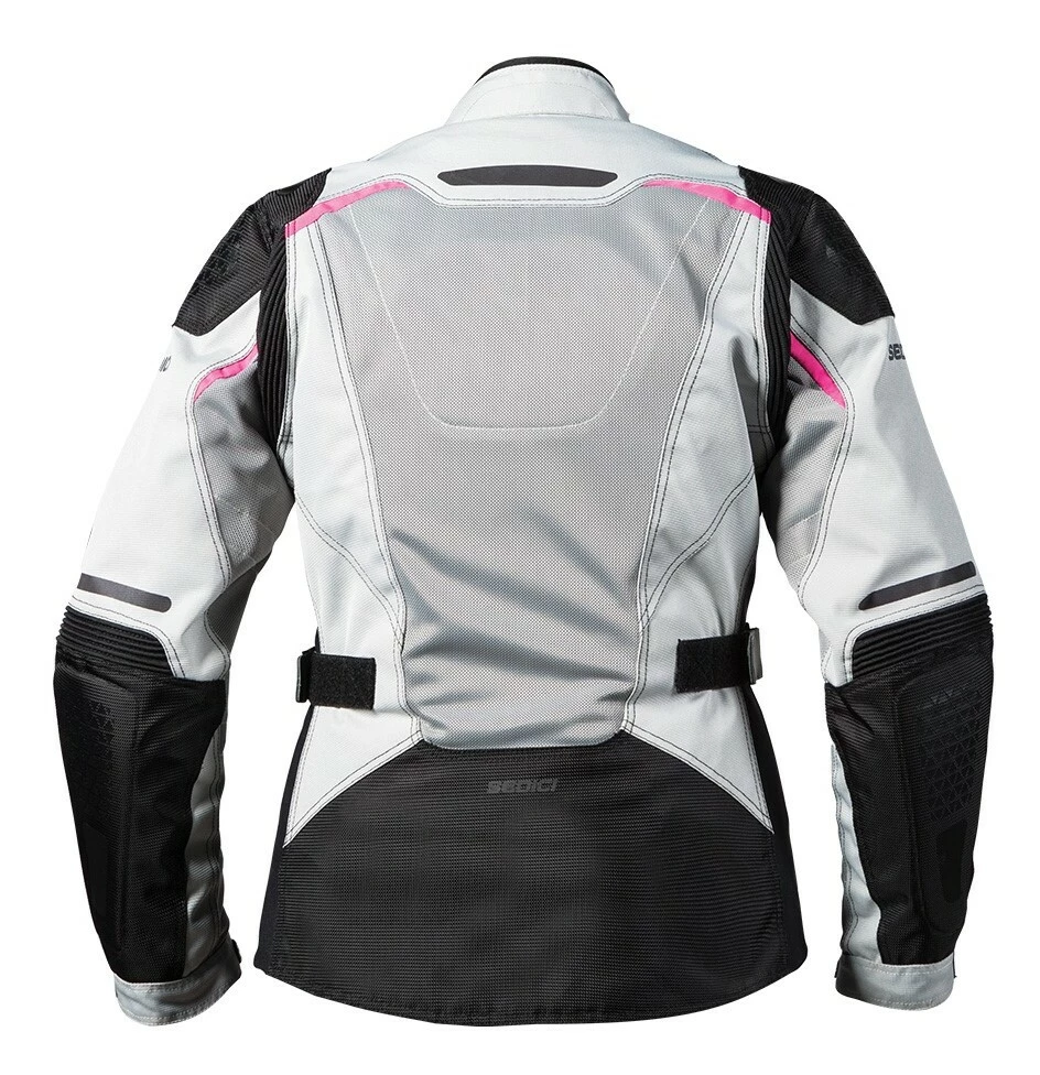 Hot weather riding can take its toll even the heartiest of motorcyclists. The Sedici Alexi 2 Women’s Jacket is designed to optimize cooling airflow without compromising protection so you can ride safely through the summer season and beyond thanks to its mesh shell, removable waterproof liner and removable thermal liner. The main structure of the jacket is made out of 600D dobby construction with strategically placed hard mesh inserts at the chest, back and inner arms. Included CE Level 2 elbow and shoulder armor back an extra layer of 1200D reinforcement at these key impact areas. An available CE rated back protector (sold separately) ups the safety factor and is a breeze to install into the rear armor pocket.