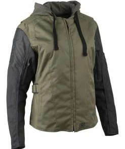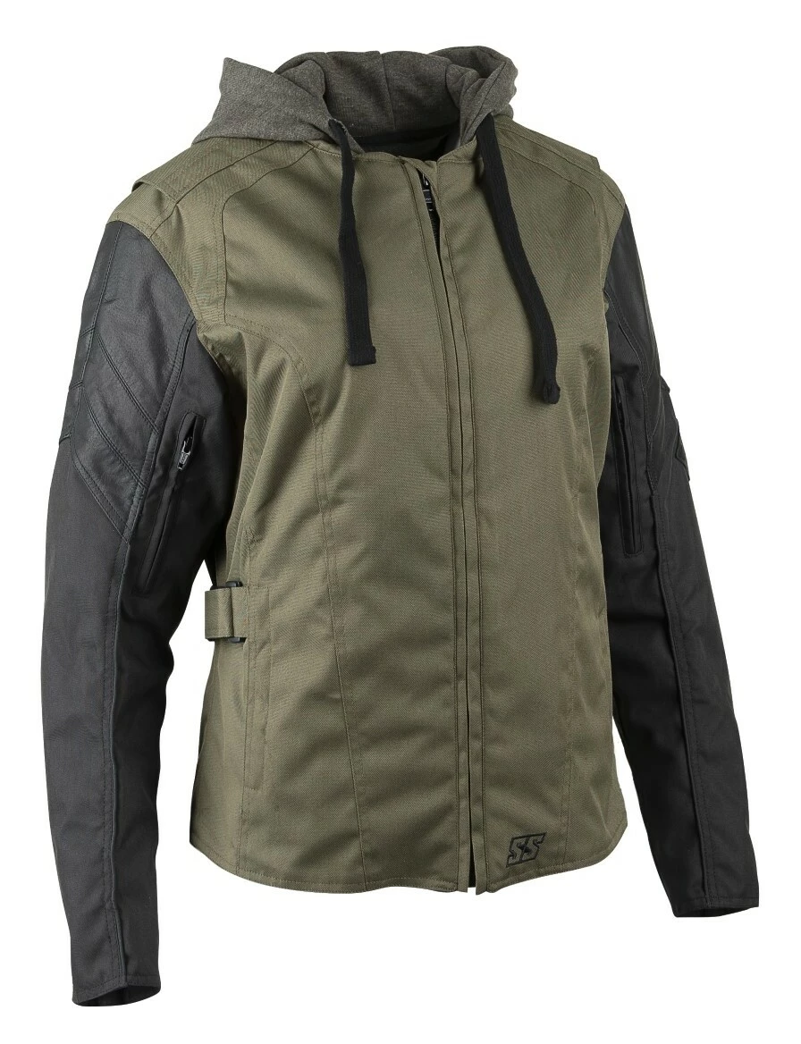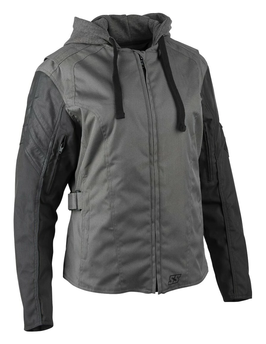 The Speed and Strength Double Take Women’s Jacket is constructed from a leather and AR-600 fabric that provides water resistance in small rain showers. Removable CE Level 2 armor on shoulders and elbows combines with a removable CE Level 1 back protector for all around protection. A removable cotton and polyester hooded vest liner is included for when the temperatures drop. An armed response concealed carry pocket allows riders to keep that thing on them for when the road gets rough. Reflective trim ensures that all the other drivers on the road see you even if you don’t see them.