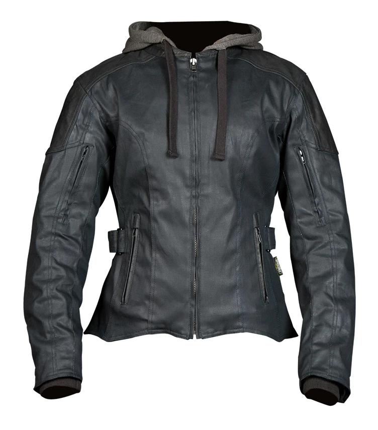 The Street & Steel Runaway Jacket packs a traditional waxed cotton shell with discreet reflective detailing, a jeans loop and CE Level 2 shoulder and elbow armor. When temperatures rise, open the Runaway’s zippered vents and remove the included full-sleeve hooded fleece liner.Β