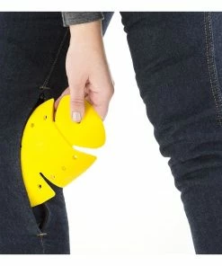 The Scarlett Jeans come with removable Knox MICRO LOCK CE approved Knee and hip armor which is concealed in a pocket that is accessed from the outside of the jeans via an invisible zip.