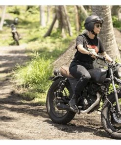 The High Waist Women’s Jeans are constructed with a single layer material, making them feel like everyday pants. Abrasion resistant fibers woven into the fabric make the jeans completely CE rated, while still being stylish and comfortable. Pairing together Polyethylene, Polyarylate and Aramid fibers make the pants stronger than steel with a very high melting point, transmitting very little heat in the event of a slide.Β The abrasion-resistant and stylish high-waist motorcycle jeans that you won’t want to take off even after riding.