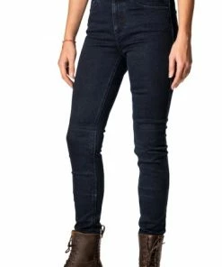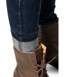 The βtechβ in RokkerTech is an ultra-high-molecular-weight polyethylene (UHMWPE), a material with fibers twice the strength of steel. Indigo-dyed cotton is woven around the UHMWPE core threads to achieve a denim fabric that looks just like regular denim but packs unparalleled abrasion resistance. Now with D3O Ghost hip and knee armor included, the RokkerTech High Waist Slim Women’s Jeans are the whole package – and then some.Β