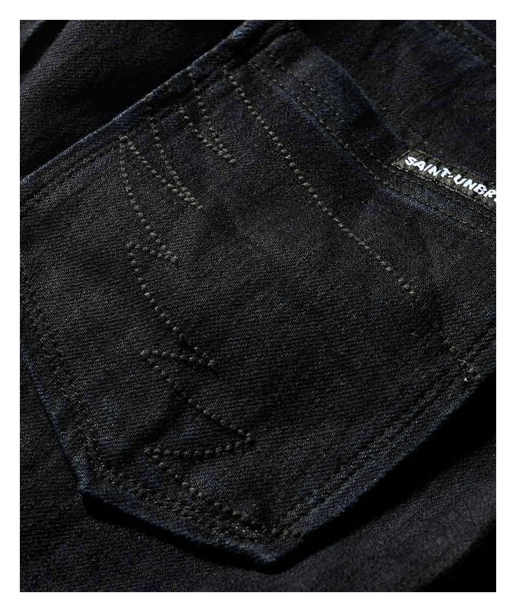 Saint uses 12 indigo and two black baths to dye Saintβs Unbreakable Stretch Jeans and then their craftspeople wash each garment resulting in the unique shade of Jet Black Indigo. Just like raw denim, Saint jeans will wash and wear to their own unique character. Over the first weeks of wear your jeans may require special consideration as the dark raw dyes may transfer to tan or white garments and upholstery.